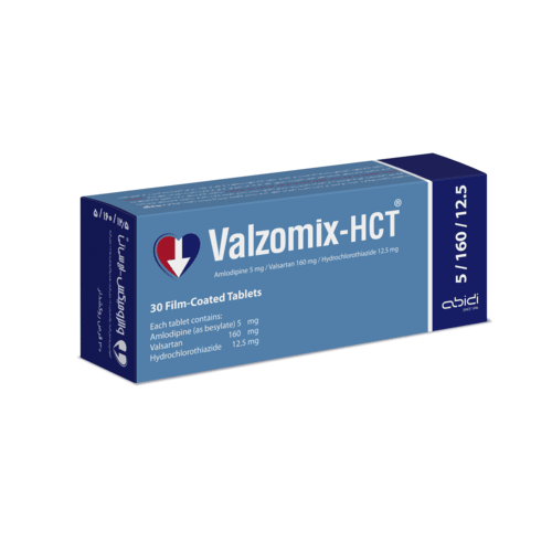 قرص والزومیکس- اچ سی تی® ۵/۱۶۰/۱۲.۵ میلی گرم با نام ژنریک والسارتان، آملودیپین و هیدروکلروتیازید توسط داروسازی دکتر عبیدی تولید شده و تامین آن در داروخانههای معتبر سراسر کشور، توسط شرکت پخش دارو آدورا انجام میشود. این دارو برای درمان و کاهش فشار خون بالا تجویز و مصرف میشود. مصرف قرص والزومیکس ۵/۱۶۰/۱۲.۵ میلی گرم حتما باید به توصیه و تجویز پزشک انجام شود.